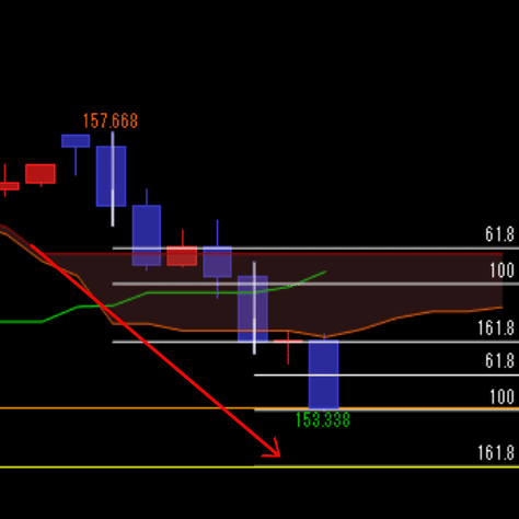 レジスタンスラインが見当たらない現在の状況では「上に行けばどこまで行くか分からない、下は152.46円が命綱」という構図です。