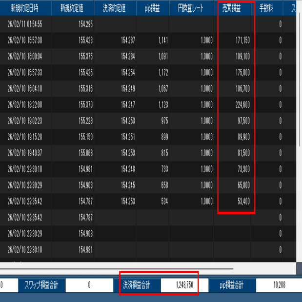 ✅ 2月10日から2月11日の取引結果