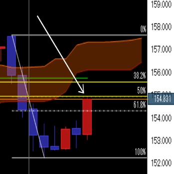 50%のラインは「154円97銭」となりますのでそこから「急落」という
